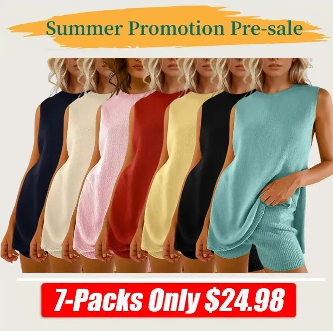 🔥 7 Packs for $24.98 🔥 -Women's 2 Piece Outfits Summer Knit Sweater