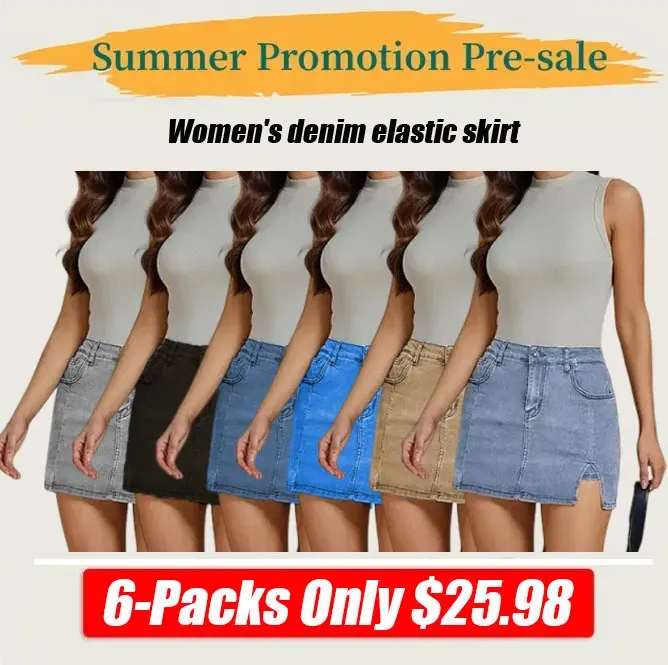 🔥Skorts Skirts for Women Denim Mini Skirt Side Slit with High Waisted Jean Shorts Stretchy