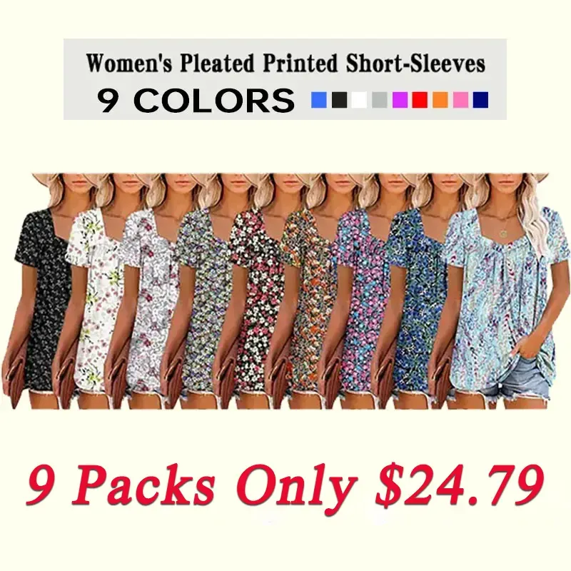 🔥Last Day Promotion🔥Womens T Shirts Short Sleeve Pleated Dressy Casual Scooped Neck Summer Tops Blouses