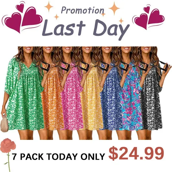 🎁Women's Summer V Neck Chiffon Dress⏳Buy one get one free