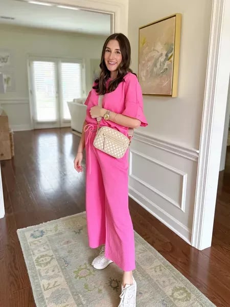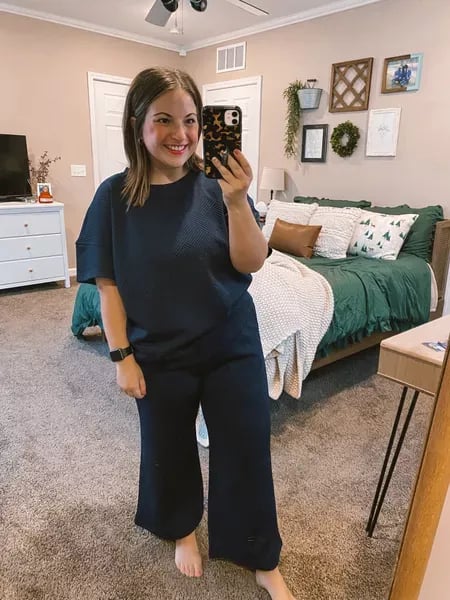 ⏰Women's Textured Loose Fit T Shirt and Drawstring Pants Casual Set
