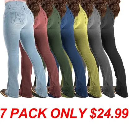 7 Different Colors x High Waist Button Fly Flare Jeans