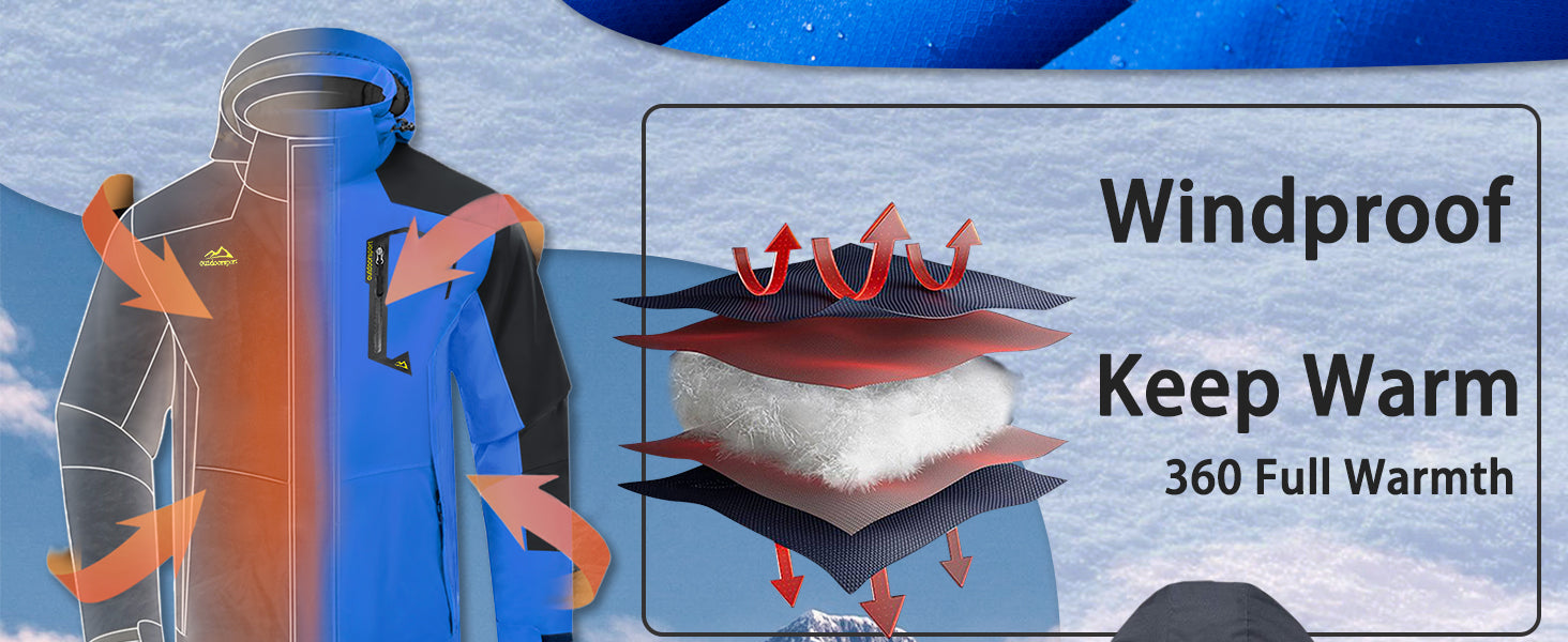 Water repellent: Professional water repellent jacket, keep your body always dry and comfortable, you won't worry about getting wet while skiing, snowboarding, hunting, hiking in inclement weather.