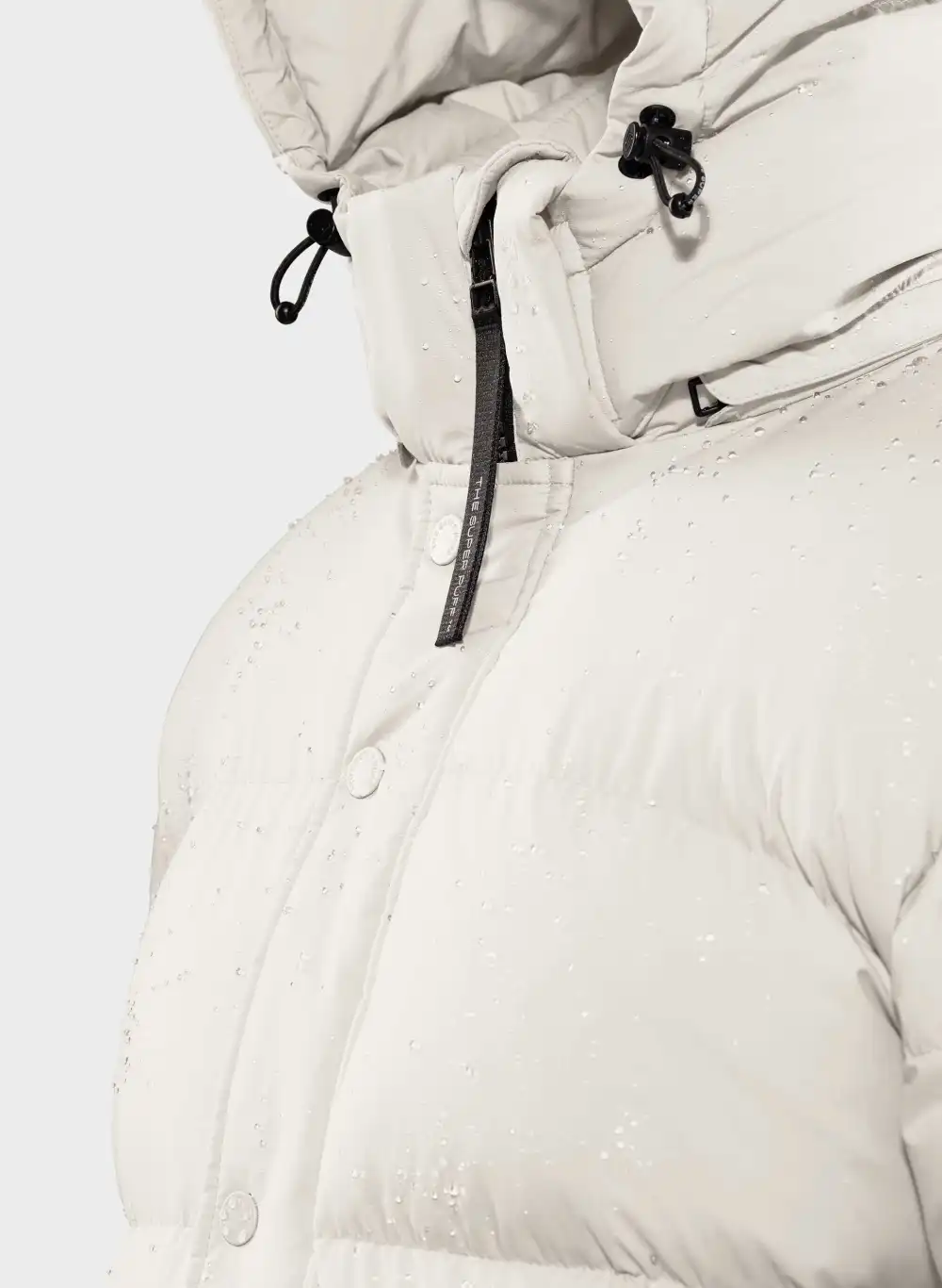 This puffer is constructed with innovative waterproof fabric from Japan and contains 100% responsibly sourced goose down.