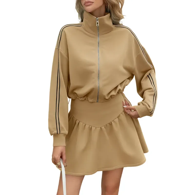 This matching set takes the stress out of styling with two on-trend pieces that work in harmony. The quarter-zip cropped sweatshirt is a fall essentialsoft, warm fabric fights off cool breezes, the partial zip adds a sporty touch (great for adjusting ventilation)and the cropped length pairs perfectly with high-waisted bottoms—showcasing a flattering silhouette without feeling too short.It’s versatile enough to wear as a full set (throw on sneakers for a laidback vibe) or mix with other pieces (pair the sweatshirt with jeans, or the skort with a turtleneck).
